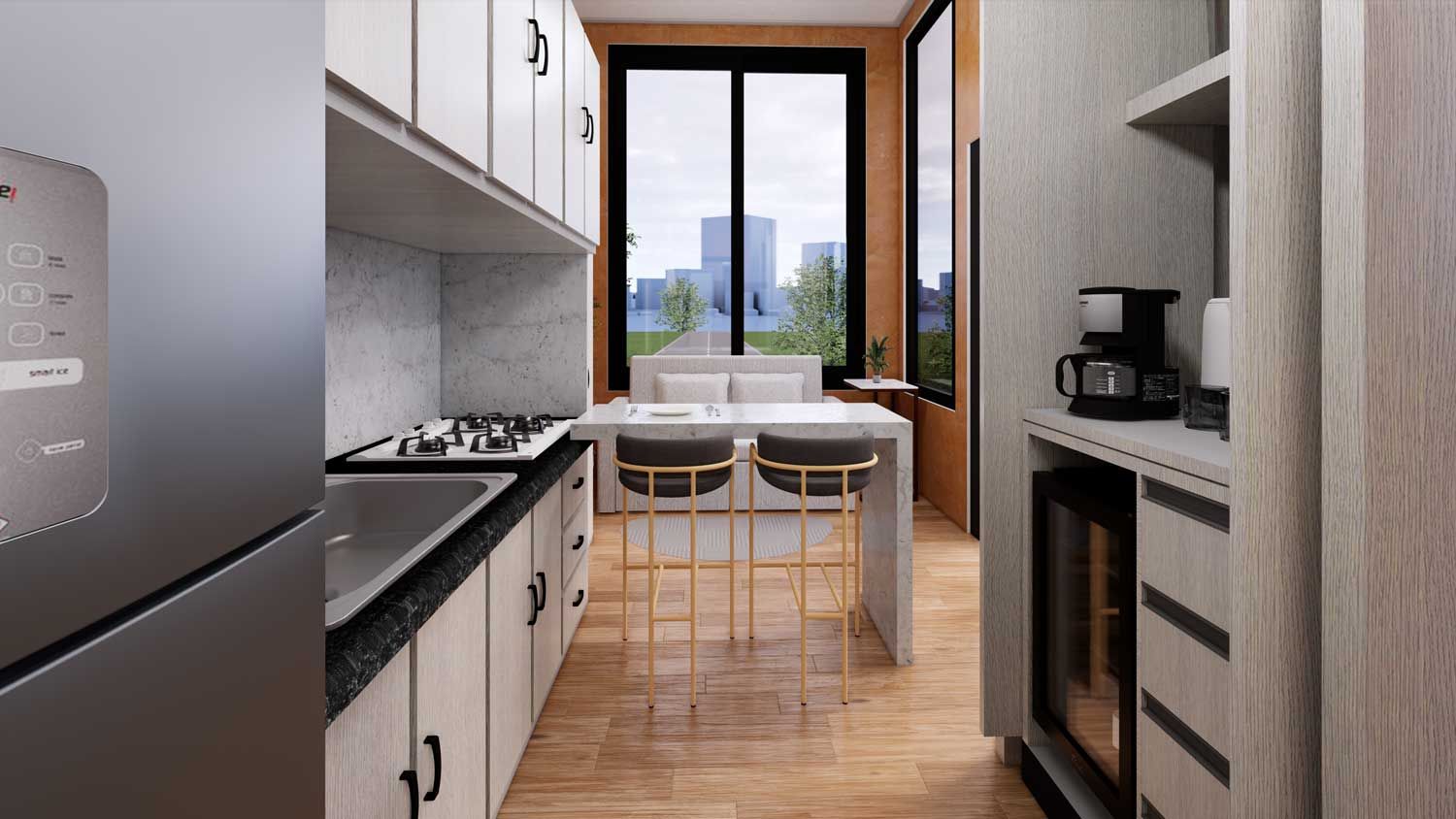 Step inside Milo and be greeted by a thoughtfully designed interior that maximizes every inch of space. The kitchen, equipped with modern appliances, offers ample storage and functionality. The lofted bed provides a cozy retreat, while the stylish bathroom ensures comfort and convenience. With large windows, natural light floods the space, creating a bright and welcoming atmosphere.