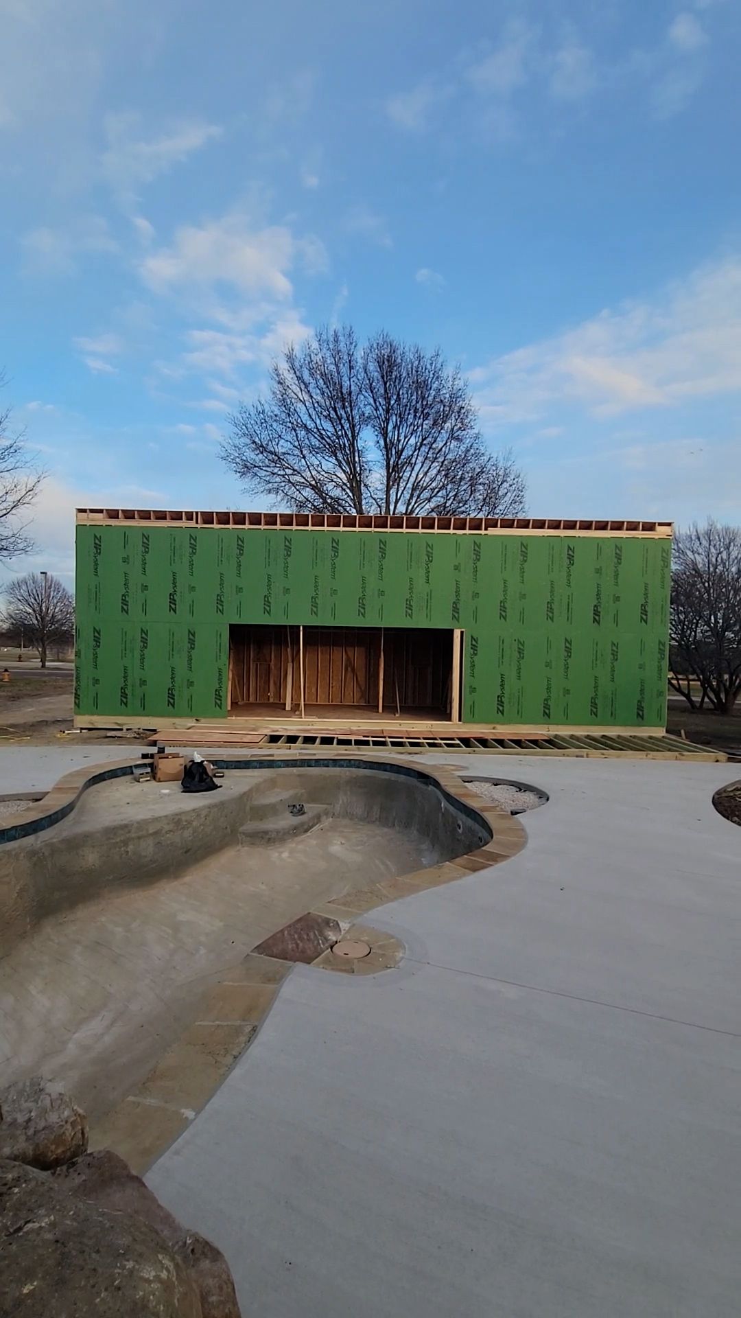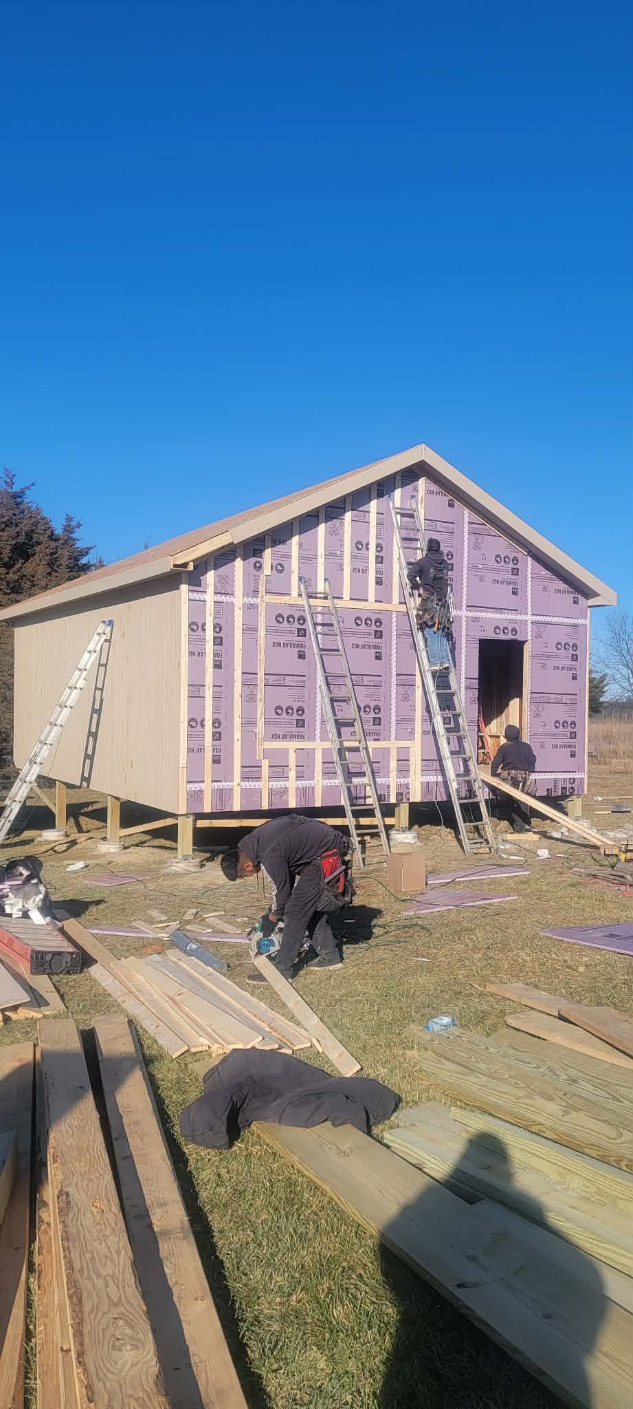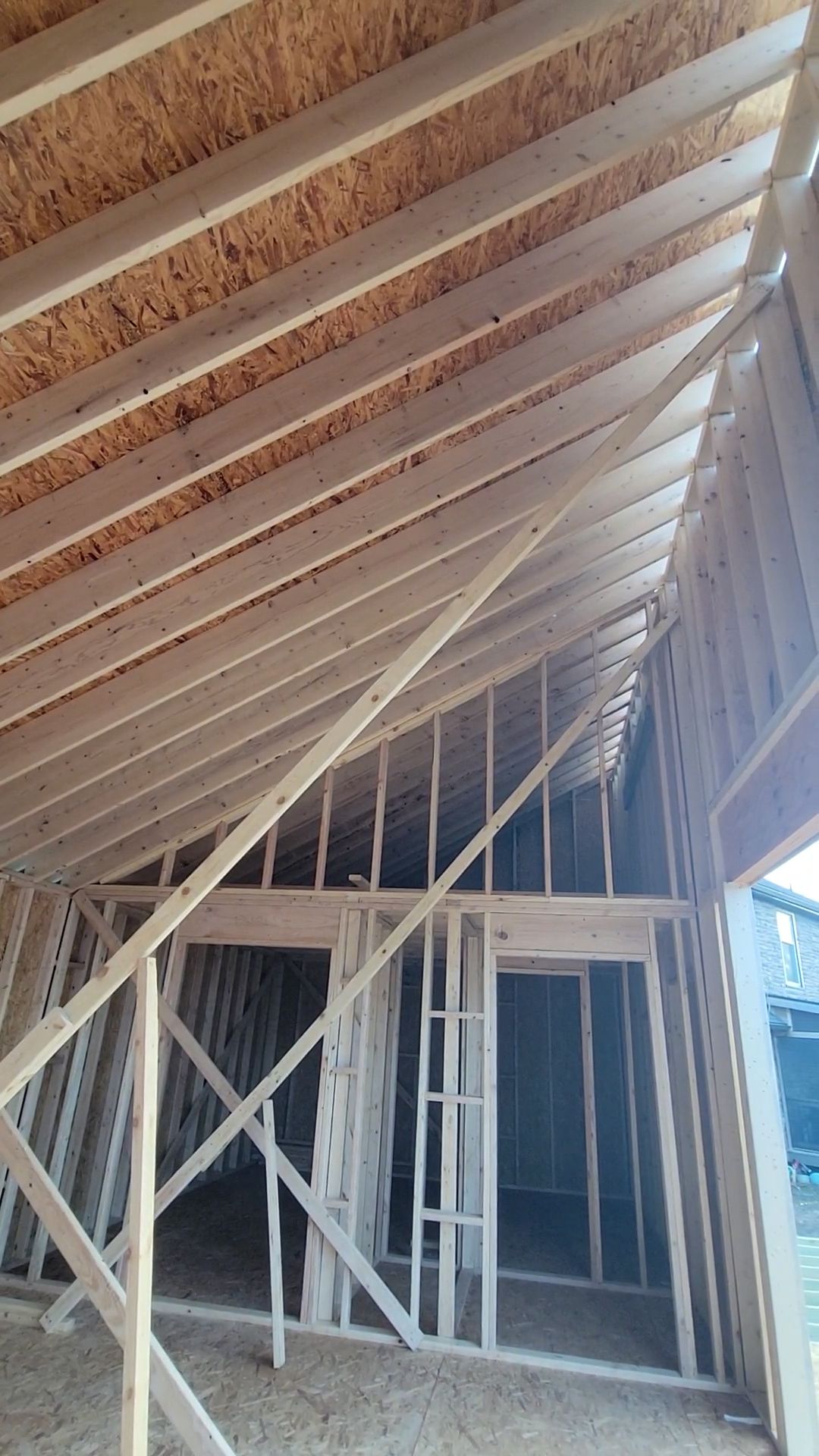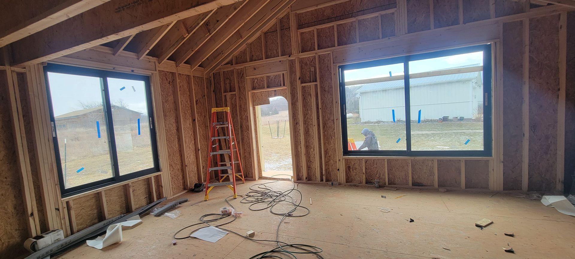 - Framing + roof and wall sheathing